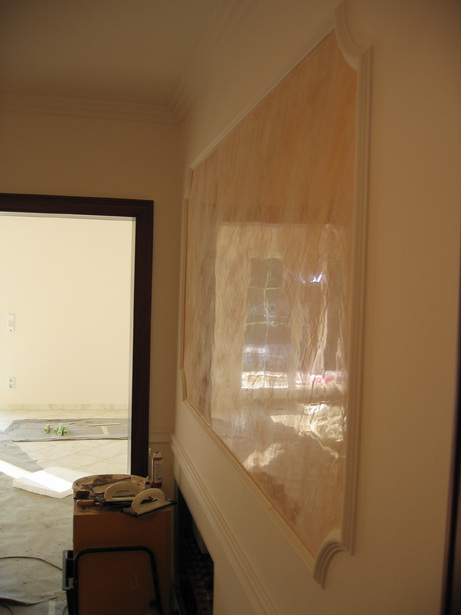 Marmorputz Marmorspachtel Stucco Veneziano Die Geschichte: Stucco Veneziano, zu Deutsch als „Venezianischer Spachtel“ bekannt, wird auch als Stucco Lustro, (zu Deutsch „Glanzputz“) angeboten, ist eine mineralischer Spachtelmasse oder Putz auf Basis von Kalk, einer der ätersten Baustoffe. Glanzputz wurde schon vor Jahrhunderten von den alten Baumeistern im ehemaligen Weltreich Venezien in Norditalien angewendet. In vielen Kulturen, hauptsächlich in den südlichen Ländern von Europa, wurde in der Vergangenheit als auch noch in der Gegenwart immer wieder gut verstanden, Kalk so fein zu verarbeiten, dass mit diesem Material ein Glanzeffekt erzielt wurde. Manche diese Fähigkeiten gingen im Lauf der Zeiten auch immer wieder in Vergessenheit. Marmorspachtel ist eine relativ neue Technik in unserem Land, und gewinnt bei uns immer mehr an Bedeutung. Es ist eine Faszinierende Spachtel, die gezielt für eine Wand oder einem Bauteil eingesetzt werden soll. Das Endergebnis sieht aus, wie eine Marmorwand, und der Unterschied zu einer echten Marmorwand ist fast nicht zu Erkennen. Kalk, heute wieder sehr modern, hat viele Vorteile: schimmelhemmend, antibakteriell, atmungsaktiv, feuchtigkeitsresistent. Die Verarbeitung: Stucco Veneziano ist eine selbstglättende Spachtel und wird mit einer gerundeten Glättkelle in mehreren feinen Schichten auf den Untergrund aufgebracht. Vier Schichten sind empfehlenswert. Diese vier Aufträge sind zusammen kaum stärker als 1 mm. Marmorputz muss händisch in mehreren Schichten aufgetragen werden. Da Stucco Veneziano ein Material auf mineralischer Basis von Kalk ist, kann es auf allen üblichen Wanduntergründen aufgebracht werden, wie Zementputz, Kalk- oder Gipsputz, auch Trockenbauwände sind bei entsprechenden Bewehrungsmaßnahmen der Stoßkanten der Ausbauplatten bestens geeignet. Die Untergründe müssen sauber, trocken, fettfrei und fest sein.