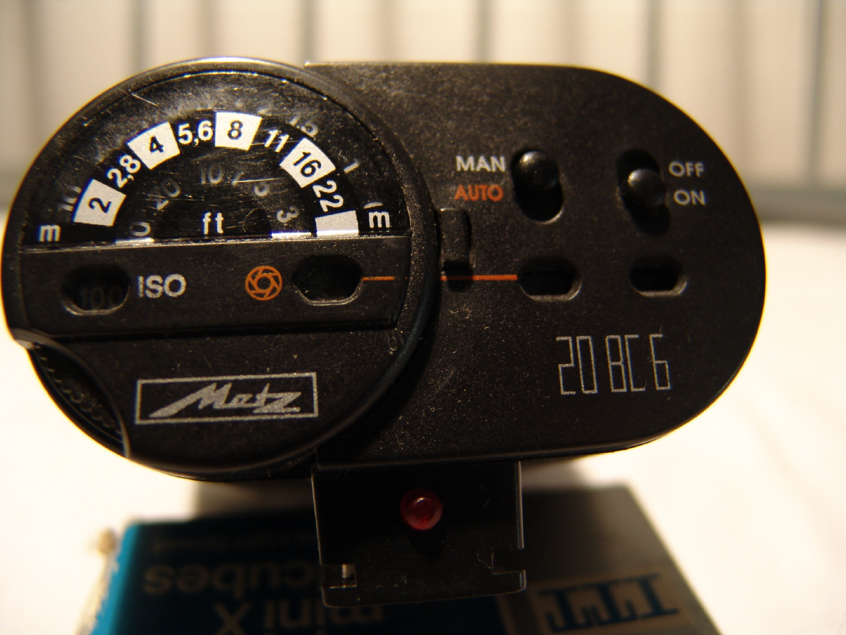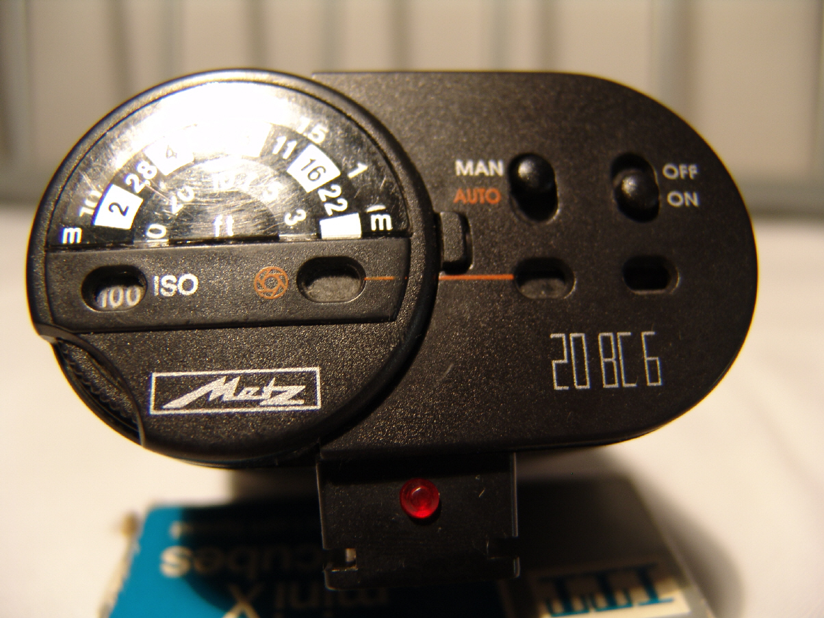 Metz Megablitz 20 BC6kleiner mobiler Aufsteckblitz von Metz Mittenkontaktgesteuert Autofokus-Automatik und Manuel nutzbar Entfernungs und Blendetabelle auf der Rückseite Bereitschaftanzeige inkl. Streuscheibe für den Nahbereich TEST Knopf Betrieb mit AA Batterien oder Akkus Gebraucht, Gebrauchsspruren, guter Zustand
