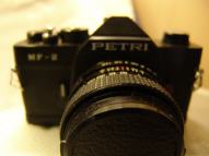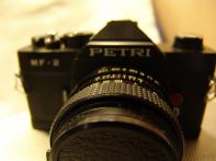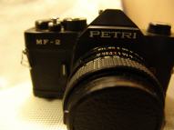 Diese Petri ist eine Kleinbild-Spiegelreflexkamera aus dem M42-System. Hinter der Firma Petri verbirgt sich ein japanischer Hersteller, der seit 1907 unter anderem Kameras herstellte. In den 1960ern wurde die Firma bekannt, da sie Technik, die mit Nikon-Kameras vergleichbar waren, zum halben Preis anbot. 1977 ging die Firma bankrott, arbeitete aber noch einige Jahre weiter. Eine der letzten gelistete Kameras vor dem Bankrott war die MF-1, daher lässt sich bei der MF-2 nur abschätzen, dass sie ca. um 1980 gebaut wurde.
